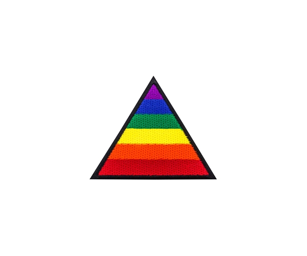 Embroidered rainbow triangle patch.