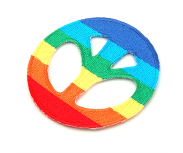 Embroidered rainbow peace symbol patch.